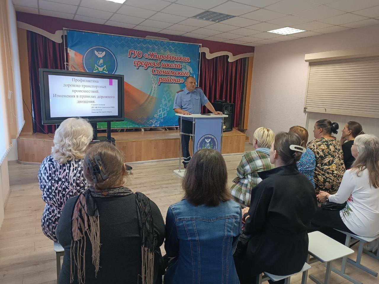 На родительском собрании старший инспектор дорожно-патрульной службы МО ГАИ Слонимского РОВД майор милиции Лавров В.В. осветил вопрос "Профилактика дорожно-транспортных происшествий. Изменения в правилах дорожного движения".