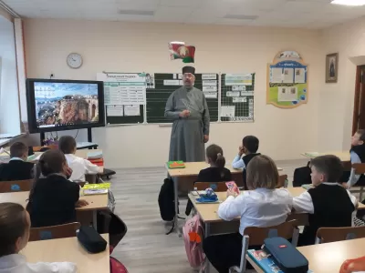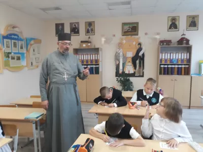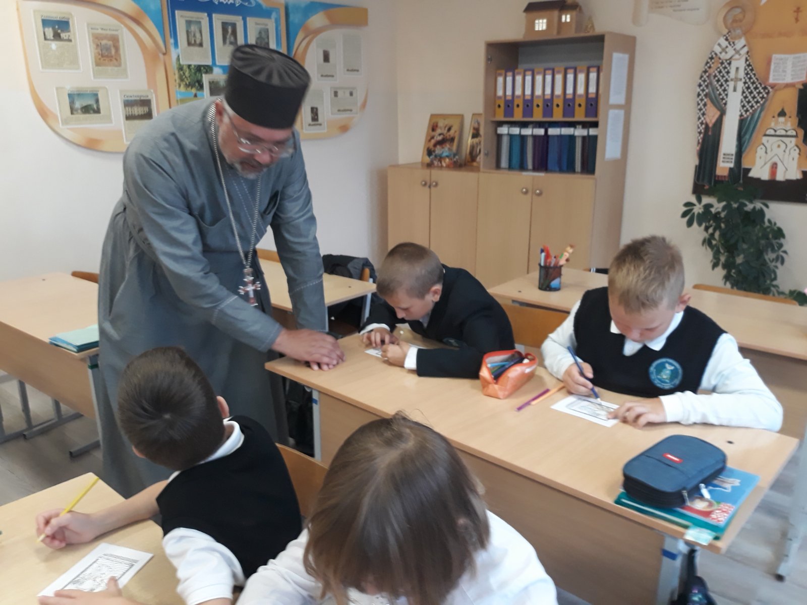 На конкретных примерах отец Вадим пояснил, насколько важна вера в жизни человека и что поступки не должны идти вразрез с заповедями Божьими. С большим интересам учащиеся отгадывали загадки, рисовали рисунки.
