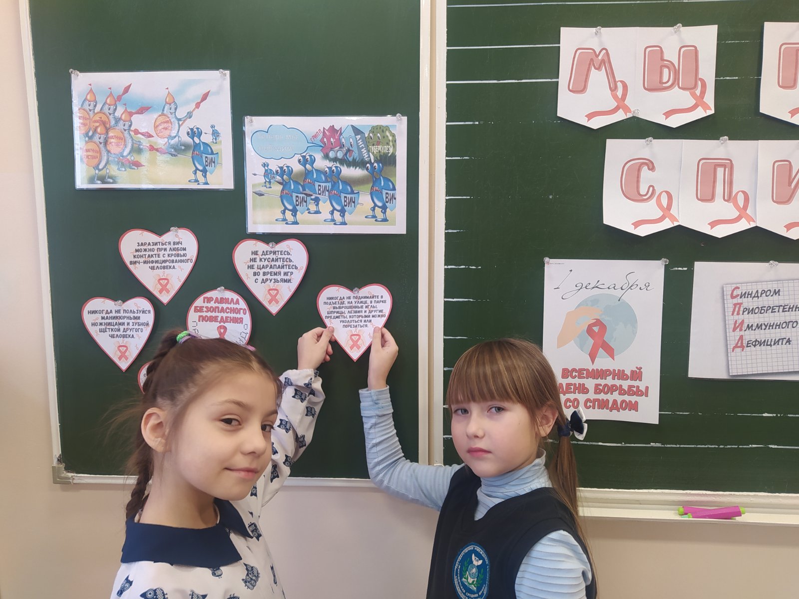 Ребятам были продемонстрированы базовые знания о ВИЧ и СПИДе, представлены наглядные пути передачи ВИЧ-инфекции, меры профилактики. Узнали о значении символа "Красная ленточка".