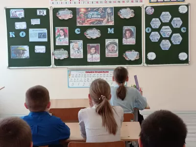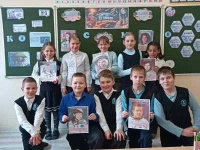 Ребята узнали много интересного об истории освоения космического пространства: о первых животных-космонавтах, о великом конструкторе Сергее Королёве и, конечно, о первом полёте человека в космос, который совершил Юрий Гагарин 12 апреля 1961 года. Третьеклассники с интересом слушали рассказ учителя.