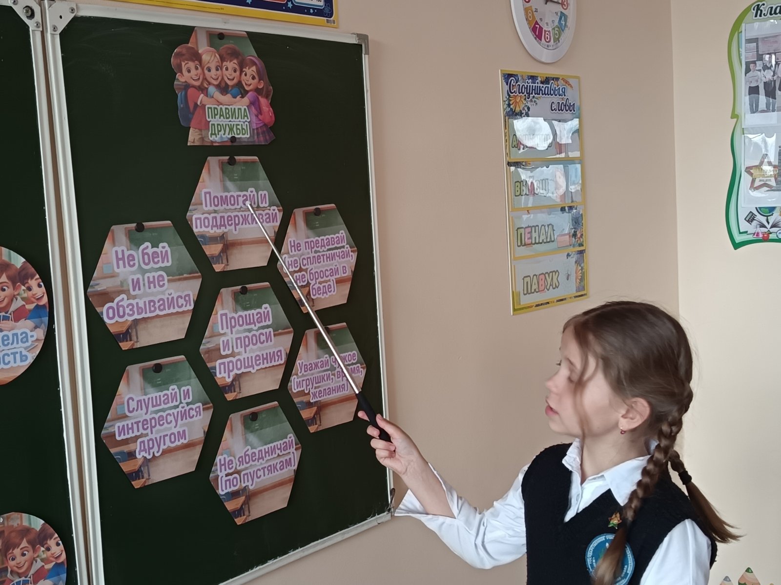 Ребята вместе с классным руководителем обсудили, что значит быть настоящим другом, чем дружба отличается от простого общения, и почему так важно беречь тёплые отношения между одноклассниками. Дети приводили примеры из литературных произведений, делились своими историями о верности и взаимовыручке.